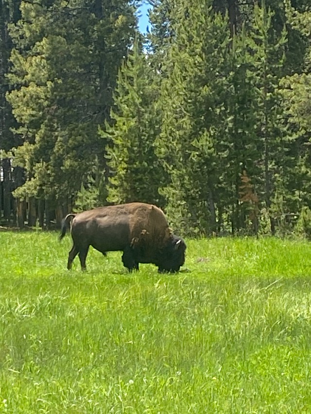 Today I saw some more elegant bison and elk. I arrived at Storm Point, where you can see the Yellowstone Lake from an outlook. As I was walking, there were a lot of bees and wildflowers. Although it was pretty, I was traumatized at the sight of so many bees. When I arrived at the outlook, I saw a marmot family. They were looking at me in curiosity. I guess they get a lot of visitors, so they were used to people. The viewpoint was pretty, but I always focus more on wildlife rather than the scenery. As we came back from the standpoint into the bee terror trail, we saw a juvenile rubber boa snake. To end the day, we saw a large elk herd and elk running in the water from some predator. We couldn’t see the predator, but something spooked them for sure!
