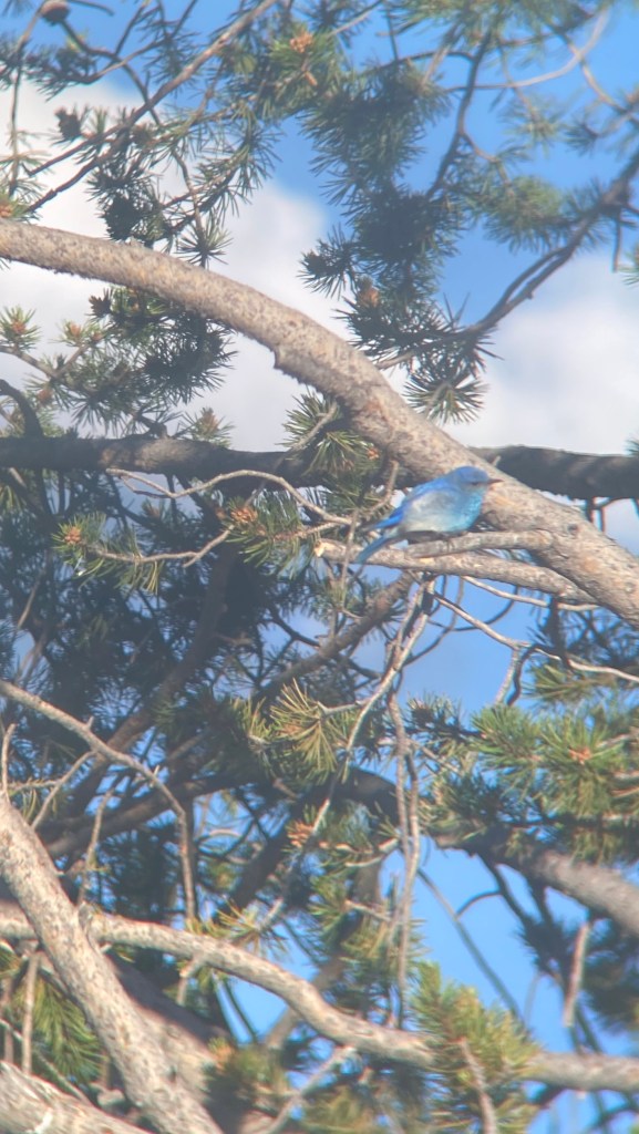 Today we were going to do horseback riding around five o’clock. We woke up late and directly ate lunch at Canyon Village. When we arrived near the horseback riding place, a black bear was hiding in the grass and just settling down. During the horseback ride, there was a herd of elk and some bison. To me, it was kind of lame since I’ve been on a lot of horseback rides and this was probably the worst one. Because there was nothing to see, I was bored during the journey. After we finished the horseback trip, we observed a bluebird. It was a pleasant sensation to view. We also saw another black bear when we were returning to the cabin. We came through Hayden Valley to get to the cabin, and we saw two wolfs playing with each other. That was an extraordinary way to end my day.