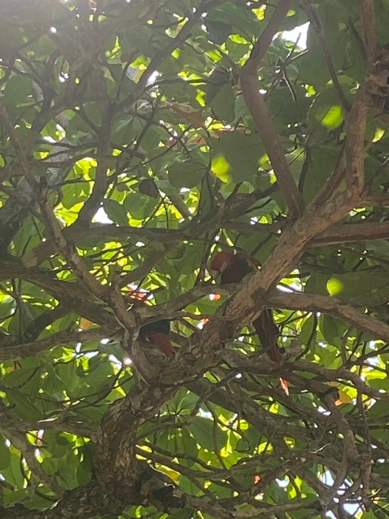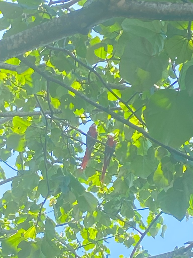 The surrounding wildlife presented itself in a mesmerizing display. A pair of Scarlet macaws were kissing each other and munching on almonds. their vibrant feathers ignited the tree on fire with their bursts of color ( jk no tree was burnt). As I was sipping on my colada, a playful baby howler monkey made an appearance, adding an extra layer of happiness to my beach day.